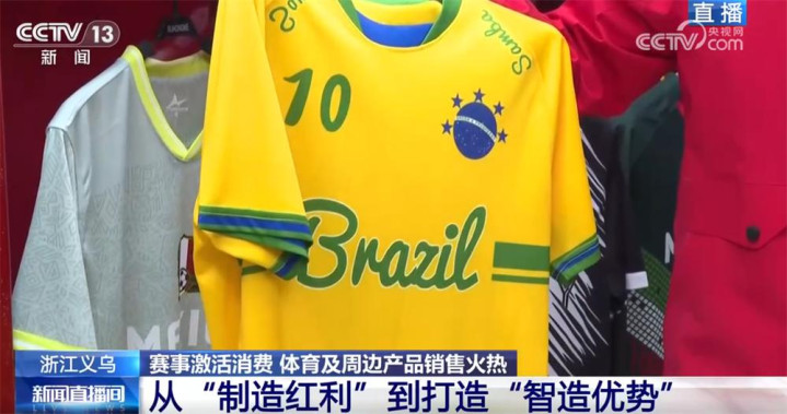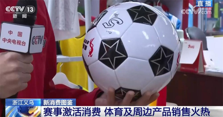 记者现在在义乌国际商贸城三区的体育用品专区,这家商户主营的是足球球迷服,大家还记得四年前的卡塔尔世界杯吗?当时这家店的老板通过观察各个参赛队球迷服的订单走势,特别是赛前那一波波的追单情况,成功预测了阿根廷队会夺冠!您看,体育经济和义乌市场之间就这样有了一次特别巧妙的联动。
